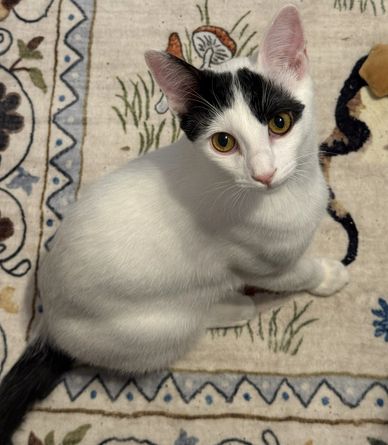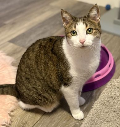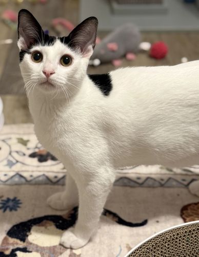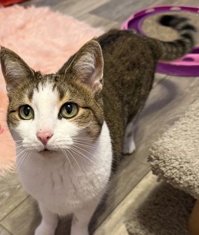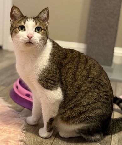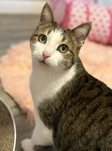 Daisy is a sweet gal but can be a bit spicy. I would say no young children for her. She is 6-8 months old and very playful. If interested please fill out our online app at www.kittykatrescue.com